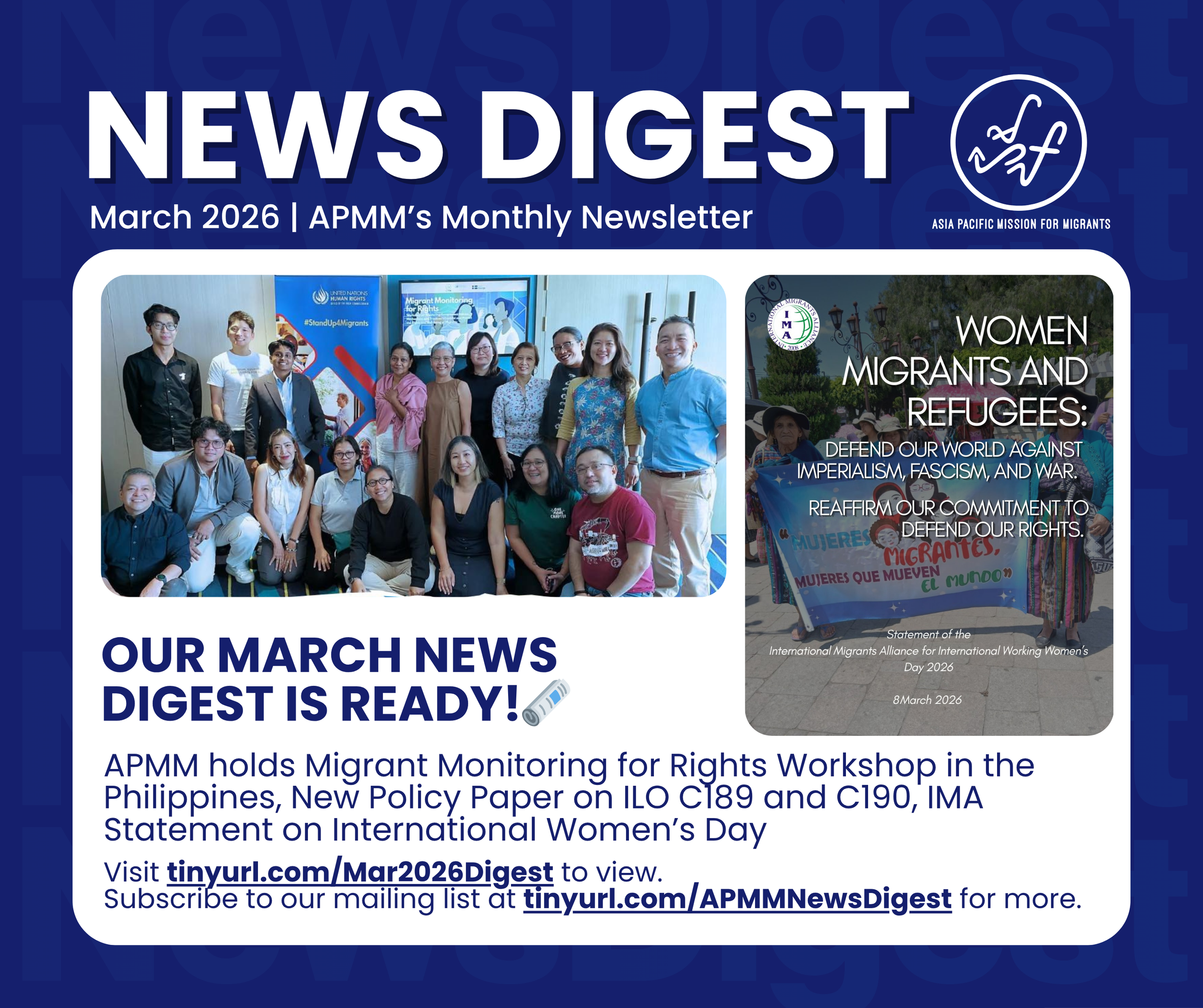 Read about the Migrant Monitoring for Rights Workshop in the Philippines, the New Policy Paper on ILO C189 and C190, the IMA Statement on International Women's Day, and more from our partners.