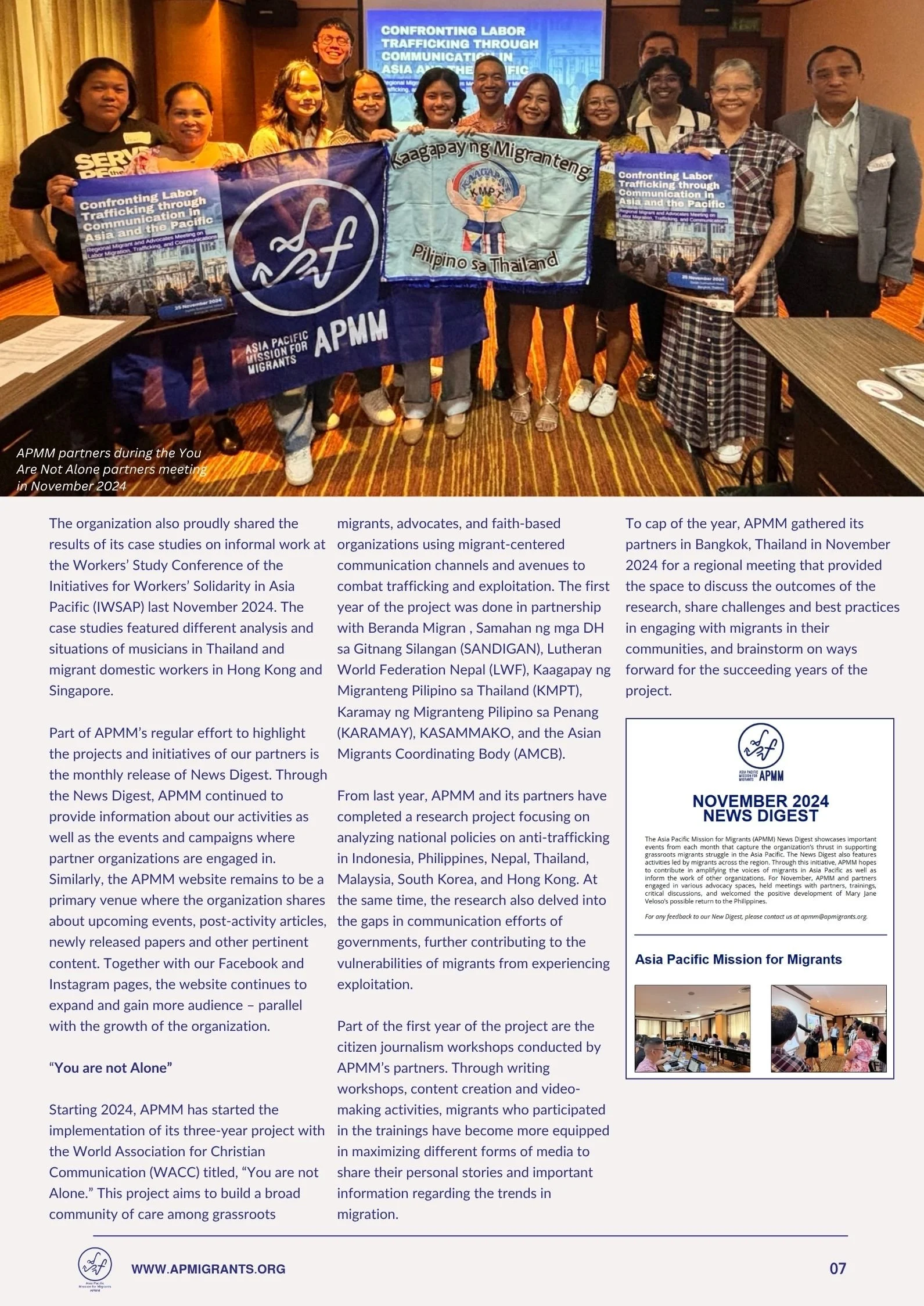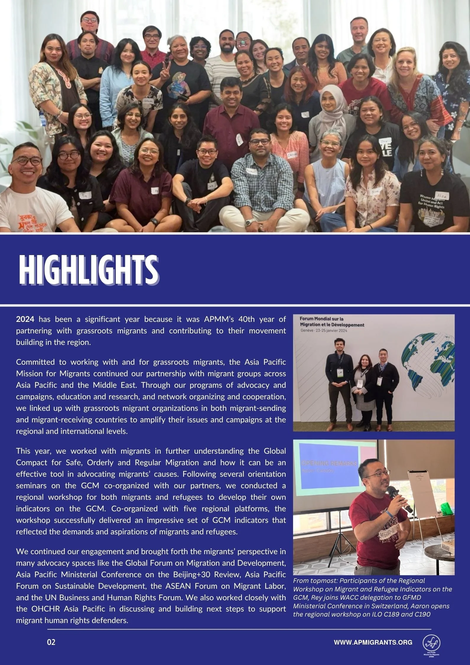 2024 has been a significant year because it was APMM’s 40th year of partnering with grassroots migrants and contributing to their movement building in the region.
